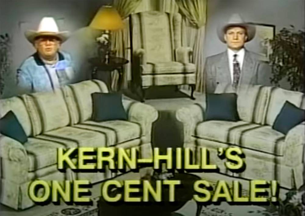 The Kern-Hill television ads are time capsules of a bygone and quickly disappearing era of local business advertising, representing a world before social media and before the arrival of box stores like IKEA. And boy, are they weird, filled with glorious, surrealist shtick. For over 30 years, you could rarely turn on a local cable channel without seeing — and hearing — the call of the floating cowboy.