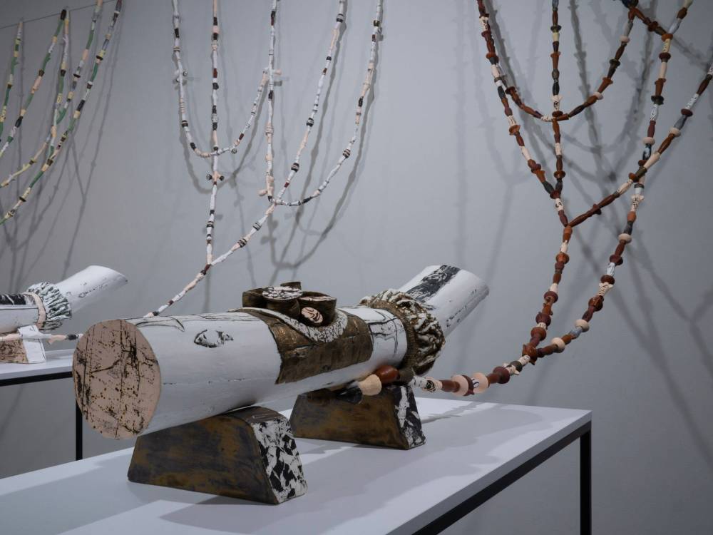 Her most recent exhibition, however, was close to home. Eruptions, which was inspired by tree fragments and felled branches, combined her limb-like porcelain beads with experiments in 3D printing with collaborator Michael Zajac, was on display at Gallery 1C03 in 2022 at the University of Winnipeg.
