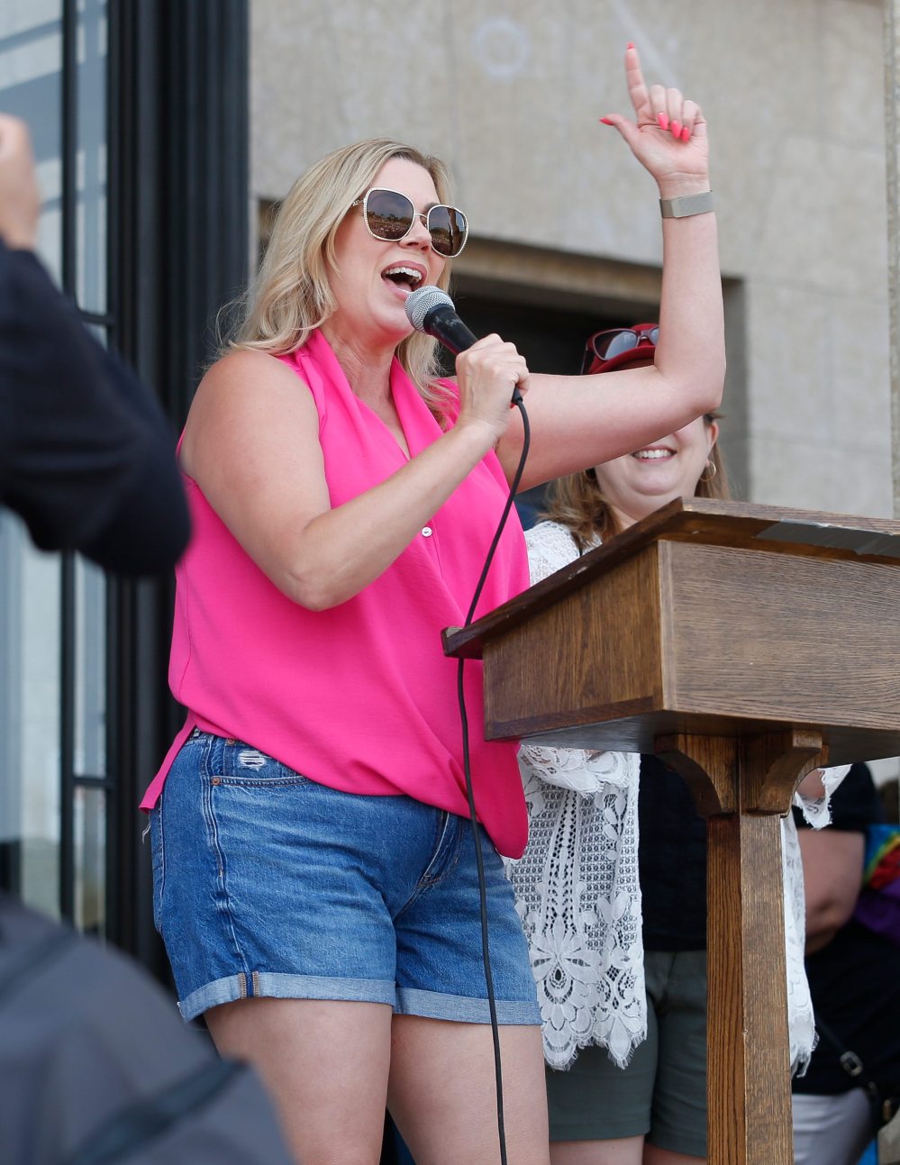 Families Minister Rochelle Squires speaks at the Pride Rally in Winnipeg Sunday, June 4, 2023.JOHN WOODS / WINNIPEG FREE PRESS