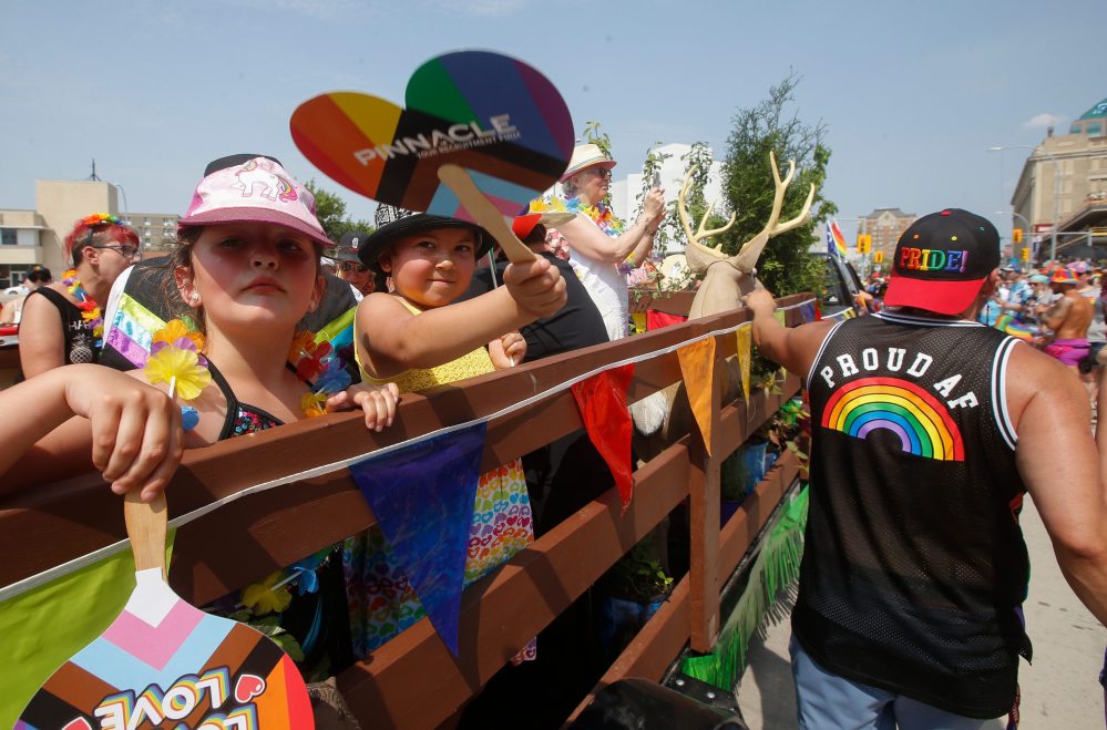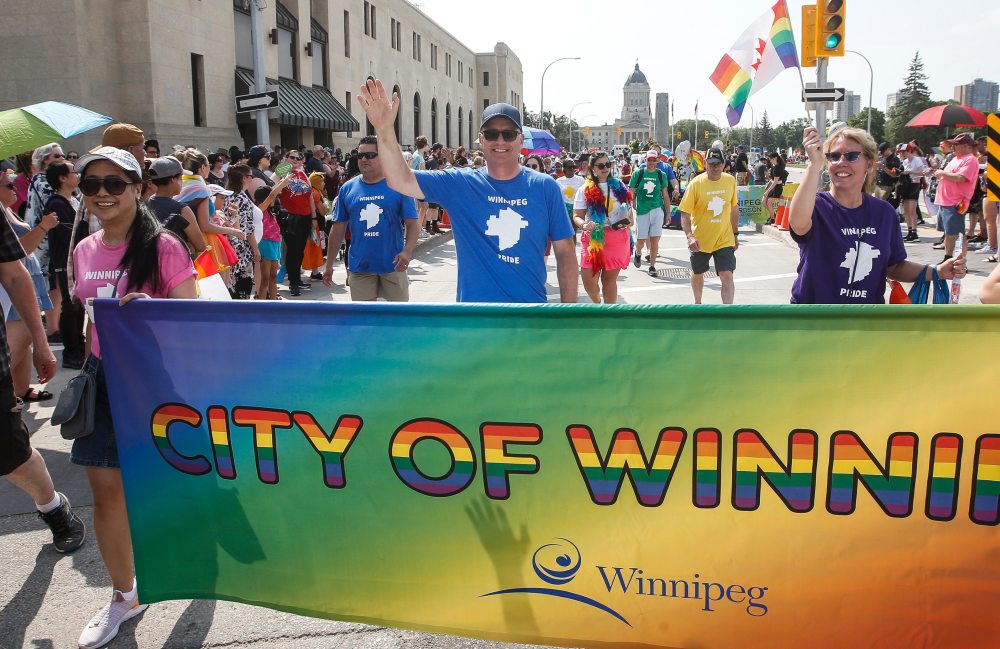 This year’s LBGTTQ+ Pride parade took place Sunday in downtown Winnipeg. About 10,000 individuals and over 160 groups registered to walk in the parade, while many thousands more celebrated while standing or sitting along the parade route, which snaked from Memorial Boulevard down Portage Avenue and Main Street to The Forks.