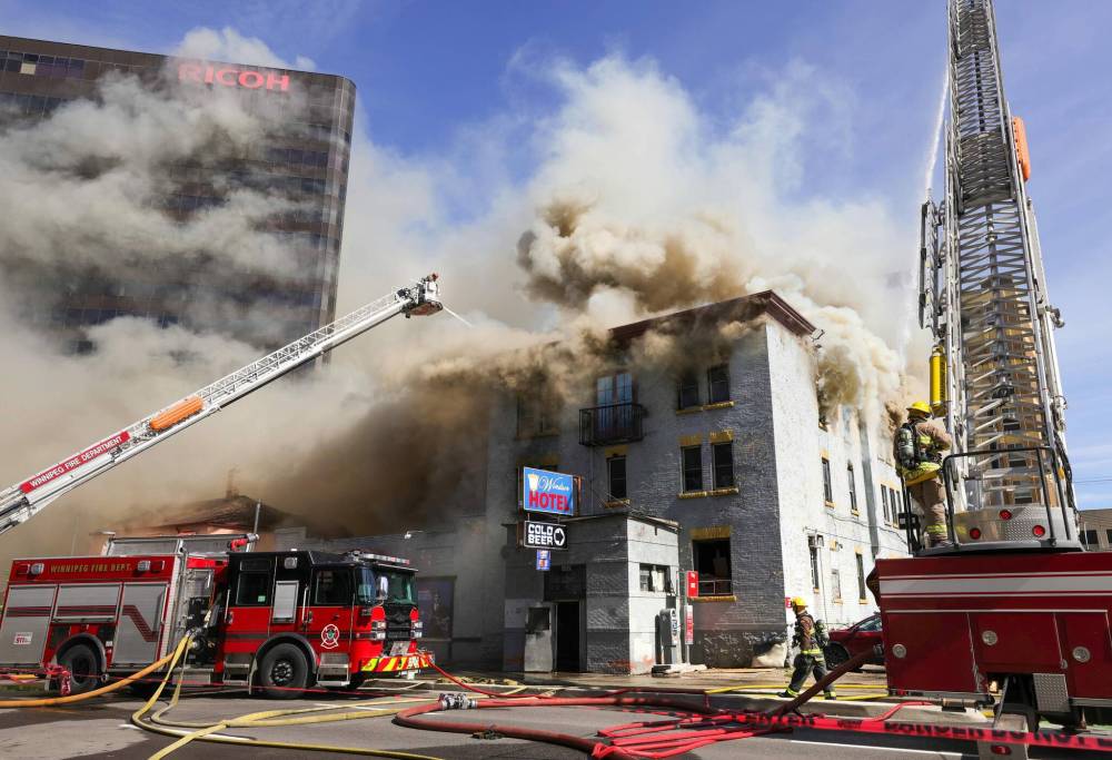 RUTH BONNEVILLE / WINNIPEG FREE PRESS The Windsor Hotel engulfed in flames last week.