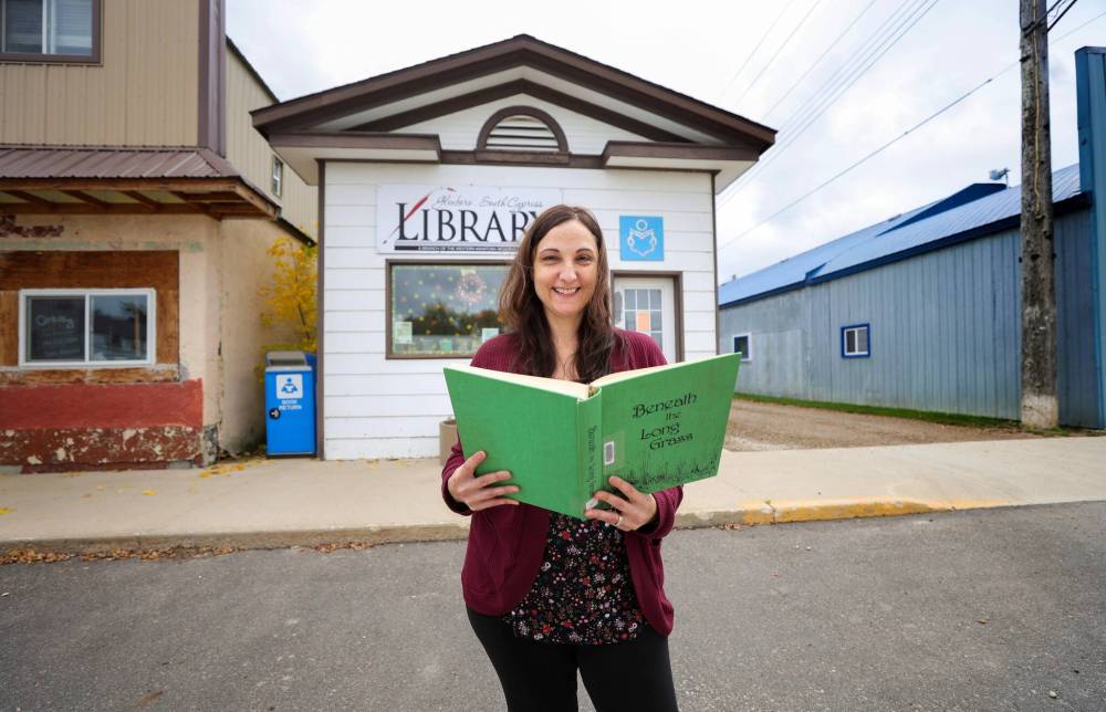 RUTH BONNEVILLE / WINNIPEG FREE PRESS Librarian Kelly Tirschman in front of the Glenboro/South Cypress Library.
