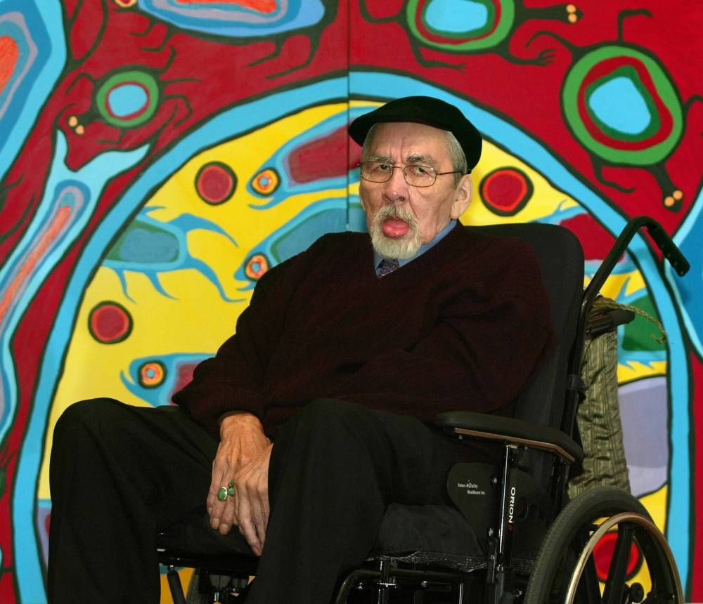 BRUNO SCHLUMBERGER / THE OTTAWA CITIZEN FILES The art of the late Norval Morrisseau, here with Androgyny 1983, is the subject of Drew Hayden Taylor’s première The Undeniable Accusations of Red Cadmium Light.