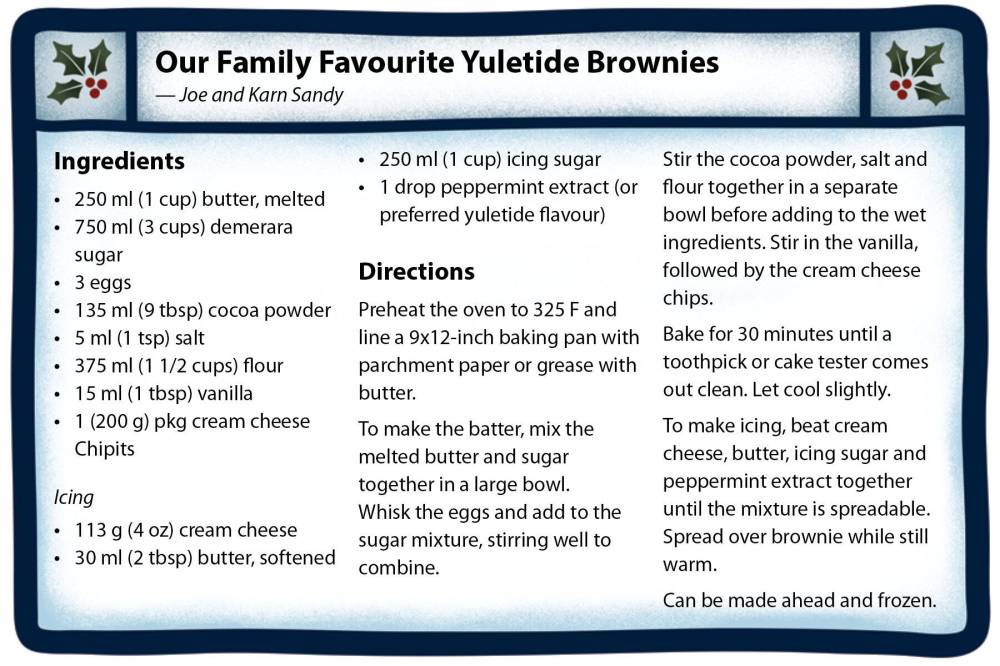 Despite his ambivalence, Joe encouraged his wife to submit her beloved brownies to the Free Press’ Homemade Holiday series. To make the recipe more festive, Karn decided to add a peppermint-infused cream cheese icing to the mix. Joe’s verdict?