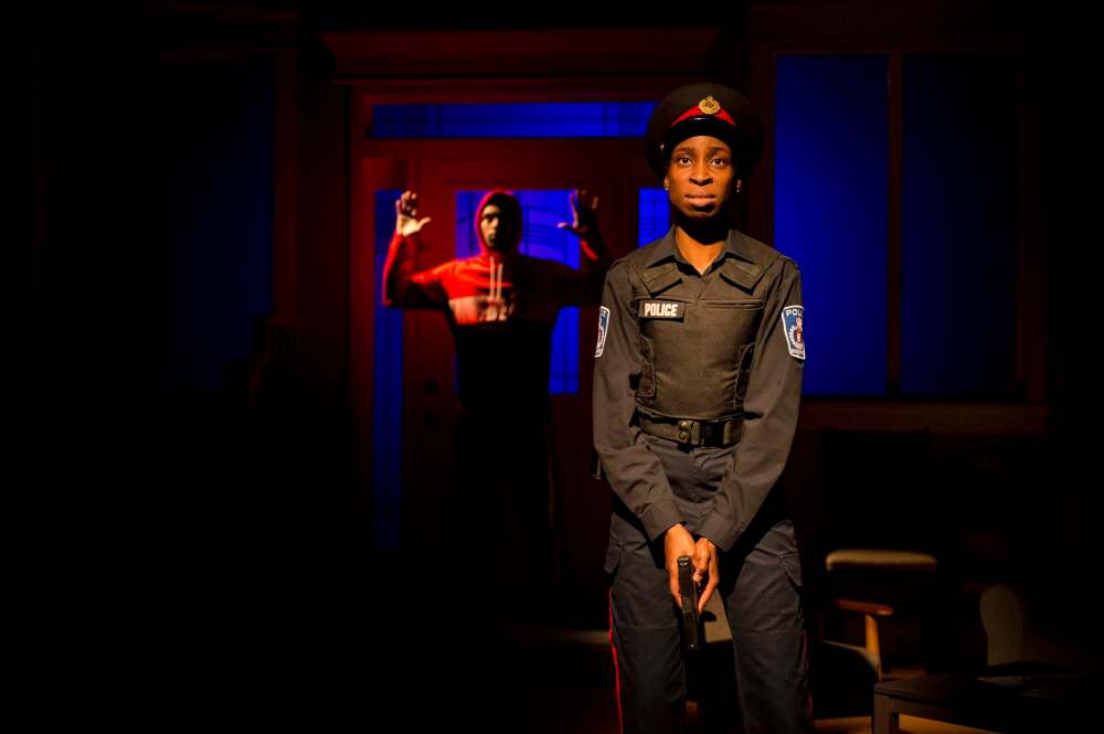 It’s a tricky show that cuts close to the bone of the theatre world. It’s about Lila (Beverly Ndukwu), a black female police officer who goes on leave after she shoots an unarmed black youth. A white playwright (Tom Keenan) adapts that story into a sensational play, and when he gets an offer to turn his drama into a screenplay, he visits Lila to belatedly share his plans, leading to a comedy-laced confrontation about race, art and appropriation.