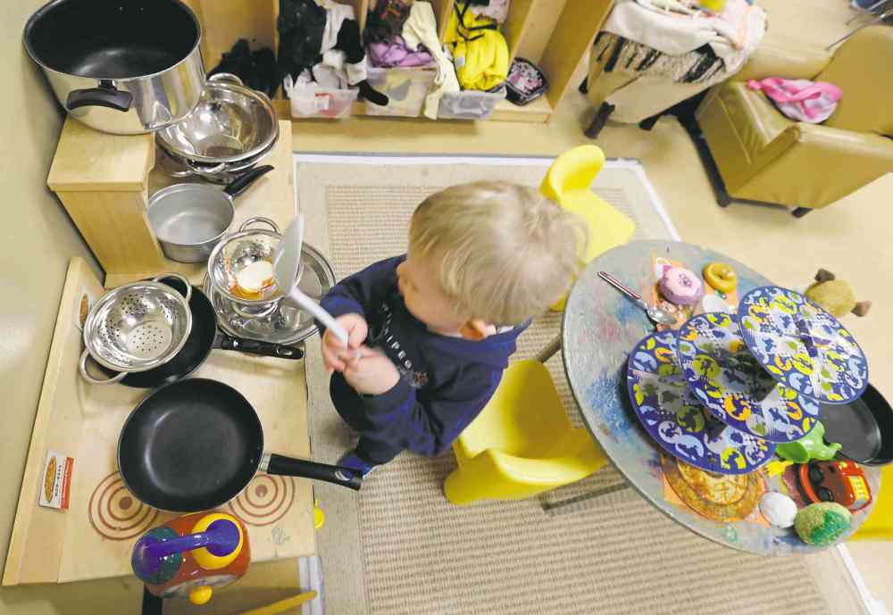 Wayne Glowacki / Winnipeg Free Press Daniel gets cooking in the play kitchen at the Sunny Mountain Day Care Centre. Research has shown that children who get a decent education start in preschool have a much brighter future.
