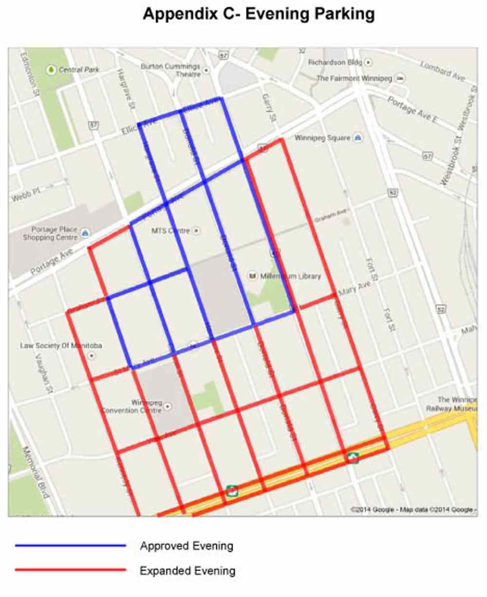 The new rules will apply to most of downtown — from Kennedy to Garry streets, and from Portage Avenue to Broadway, including a two-block area extending north to Ellice Avenue directly opposite the MTS Centre.