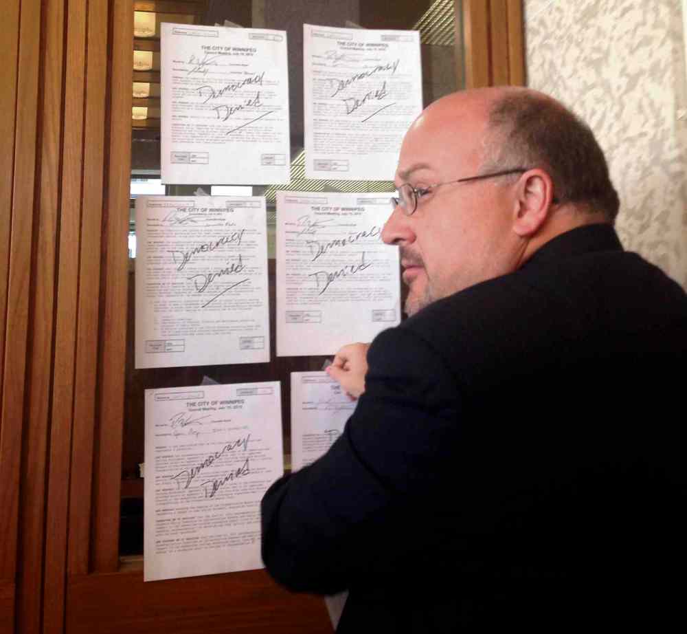 Unhappy council would not waive its rules to debate a glut of amendments to a new 20-year, $334-million active transportation cycling and pedestrian strategy — some of which would have essentially gutted the plan — Wyatt stormed out of last week’s council meeting and began taping copies of his amendments to the door of Mayor Brian Bowman’s office. He scrawled the words “Democracy Denied” on each sheet.