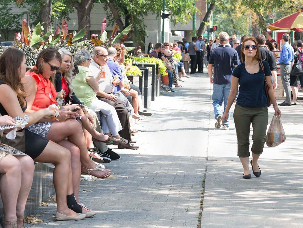 People who visit Broadway for lunch may view it as a respite from city life, but it is actually the full enjoyment of the city. Here, on the southern edge of a downtown neighbourhood easily characterized by surface lots, driveways, blank walls, and spartan street design, Broadway is a place where the human need for beauty, informality, connection and a nice place to sit have not been forgotten.
