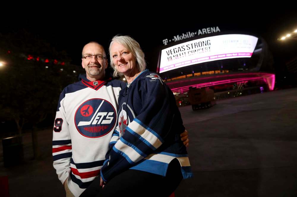 Trudy and Ian Mattey came down earlier this week on a “plane full of Jets fans.” They booked their flights last summer within an hour of the schedule coming out and Winnipeg’s first date in Vegas confirmed.