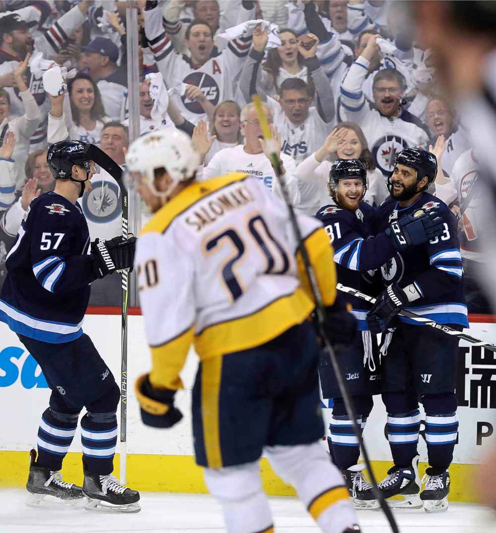 “It’s not like you get this everywhere. It’s pretty special to look back on and enjoy it. You’re going to look back on this when you’re old and it’s going to be a pretty good memory,” said defenceman Jacob Trouba, who had a goal and assist in his best game of the playoffs.