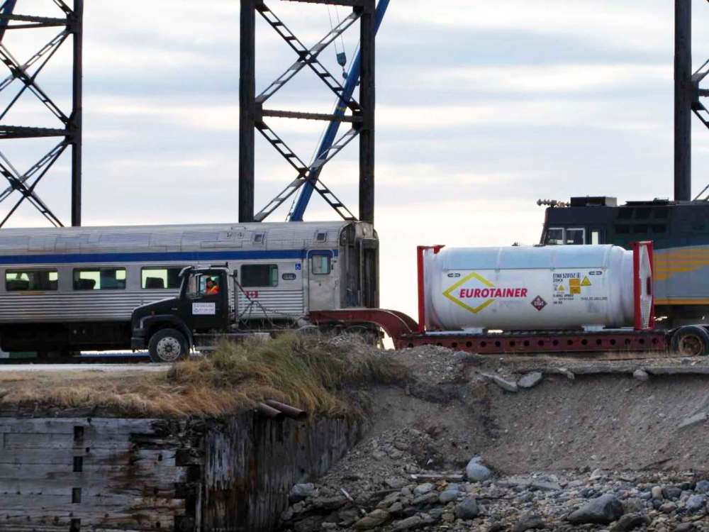 Via Rail places its two locomotives and five rail cars on a boat, to prevent its stranded train from rusting. The same boat delivered propane to help locals survive the winter, at a $6-million cost to the province.