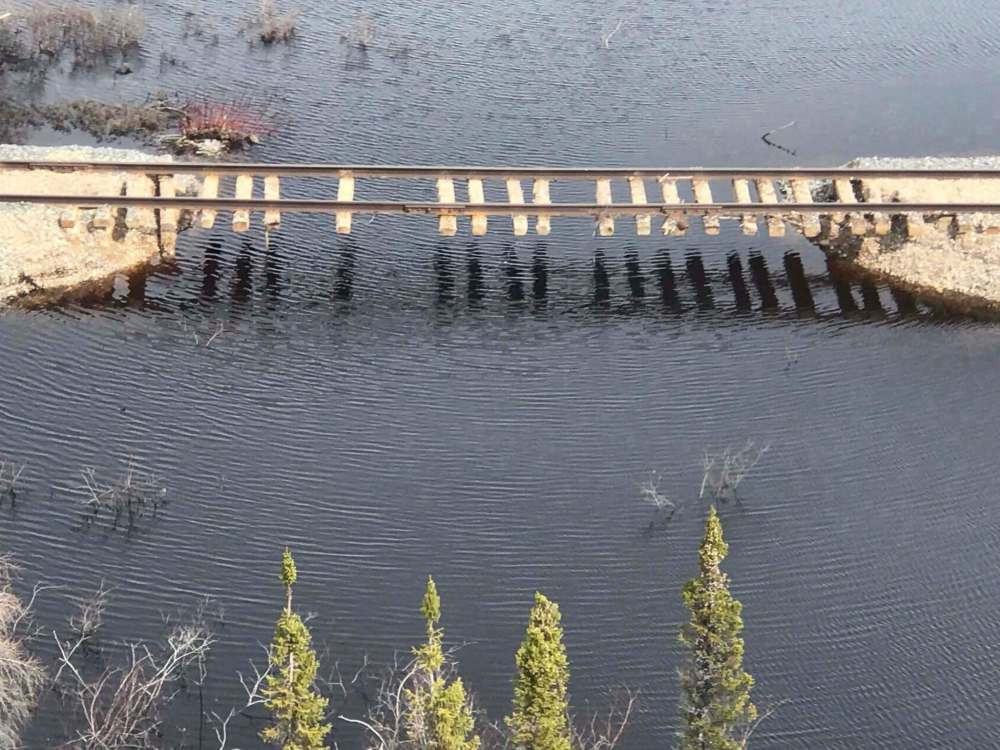 Heavy snowfall followed by a rapid melt washes out the Hudson Bay Railway at Amery, just north of Gillam. For the first time since 1929, Churchill can no longer be accessed by rail and must rely on summer sealifts and year-round flights, which cost $1,300 round-trip from Winnipeg.