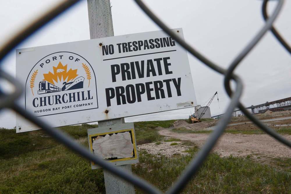 (John Woods / The Canadian Press) A "no trespassing" sign at the closed Port of Churchill is seen on Monday.