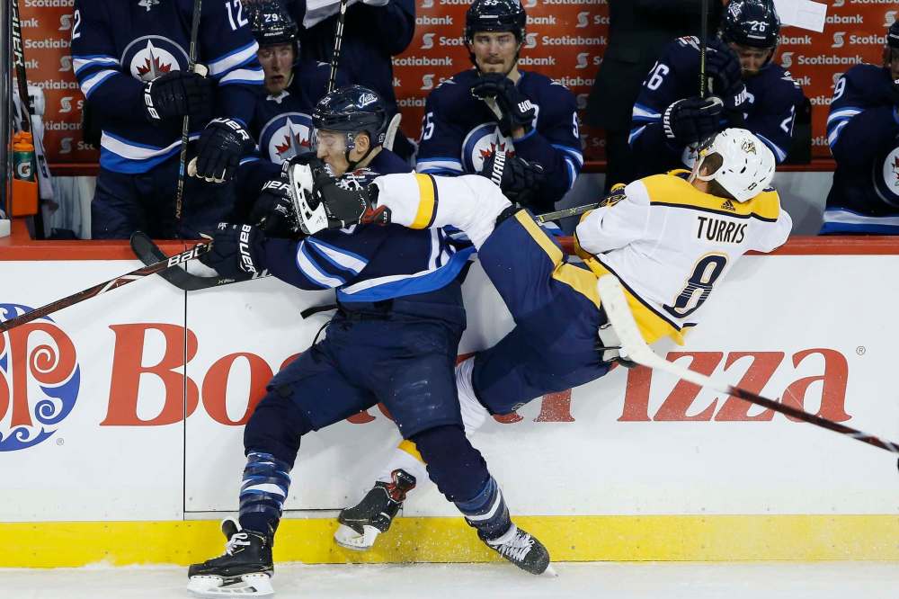 Patrik Laine finished an early check on P.K. Subban, drawing a big roar. Matt Irwin just missed what could have been a devastating open-ice hit on Jack Roslovic, Brandon Tanev crushed Kyle Turris with a hit, and then linemate Adam Lowry tried to run Mikael Granlund through the boards seconds later.