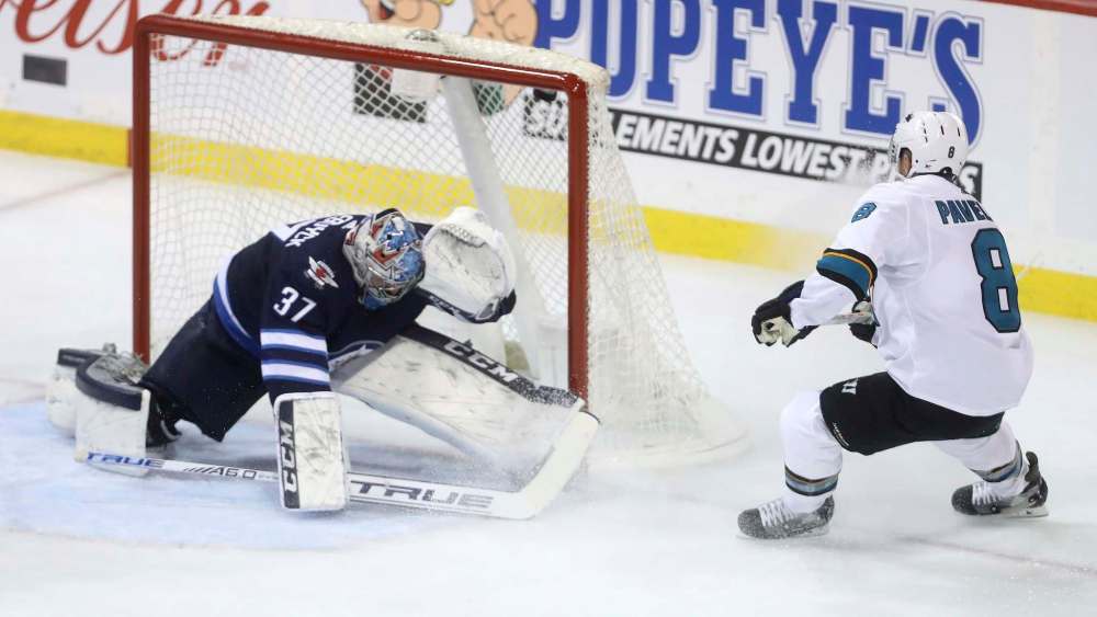 San Jose’s high-scoring captain deposited his 37th goal of the season behind netminder Connor Hellebuyck with 4.3 seconds left on the clock to lift the Sharks to a 5-4 triumph at Bell MTS Place, the first of three straight on home ice this week for the Jets.