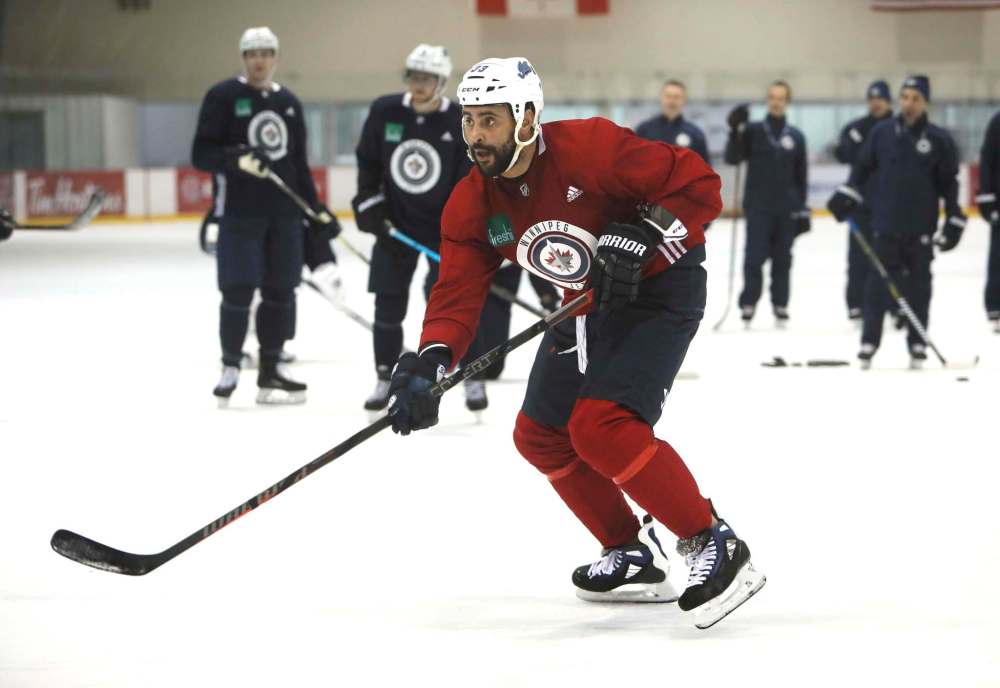 Dustin Byfuglien participated in a full practice with the Jets Monday at the IcePlex. (Ruth Bonneville / Winnipeg Free Press)