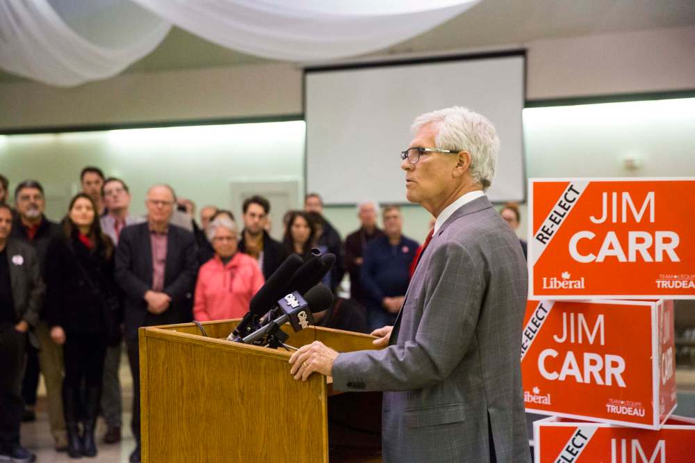 Jim Carr won his seat with more than 95 per cent of polls reporting at deadline. Conservative Joyce Bateman, who held the seat from 2011 to 2015, trailed behind. Elections Canada’s initial results showed Carr leading with 44 per cent of the vote.