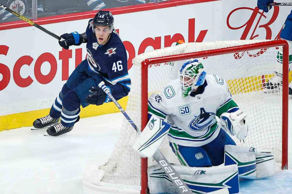 Winnipeg continued to come on strong after Roslovic’s goal, and took the lead exactly five minutes later when Connor made a nifty zone entry and took a shot on Demko, who kicked out a juicy rebound right on to Scheifele’s stick. The No. 1 centre’s sixth of the year on a slick deke gave Winnipeg a 2-1 lead.
