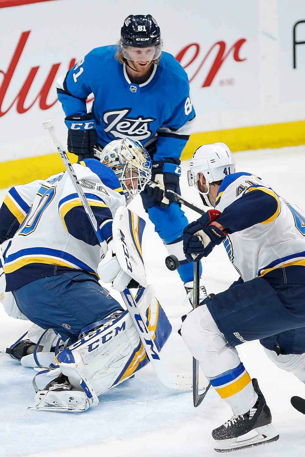 Hellebuyck’s heroics don’t hurt, either. He was rock-solid, particularly in the opening period as he turned aside several Grade-A opportunities for the Blues, finishing with 38 saves to register his 22nd win of the season.