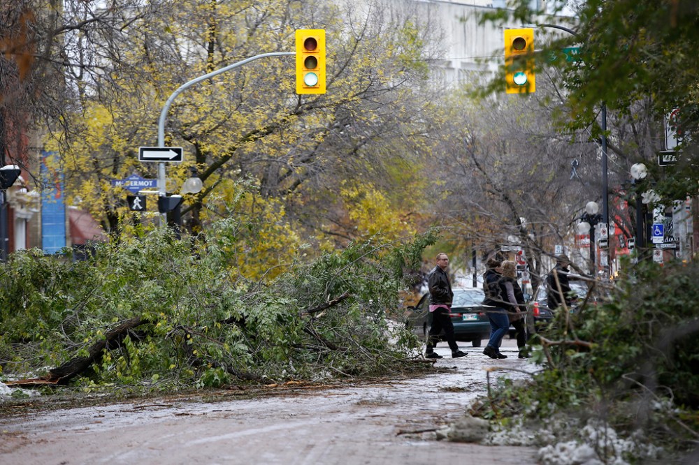 The heavy, wet snow began to fall on Oct. 10 and Manitoba Hydro said the snow and strong winds took down approximately 1,000 kilometres distribution lines, snapping 4,000 wood poles from which they hung.