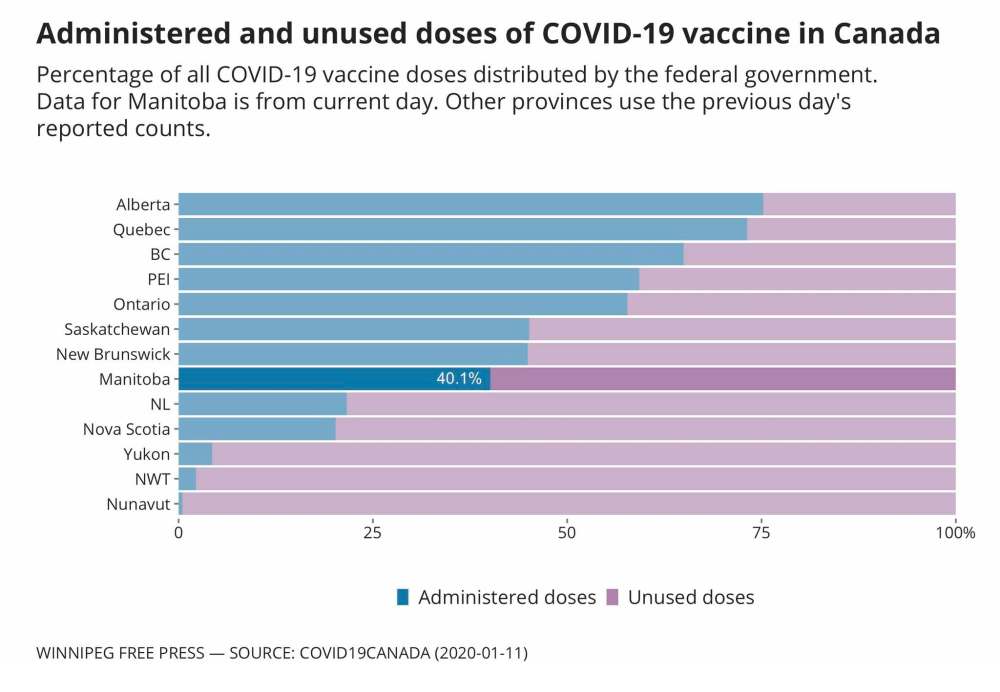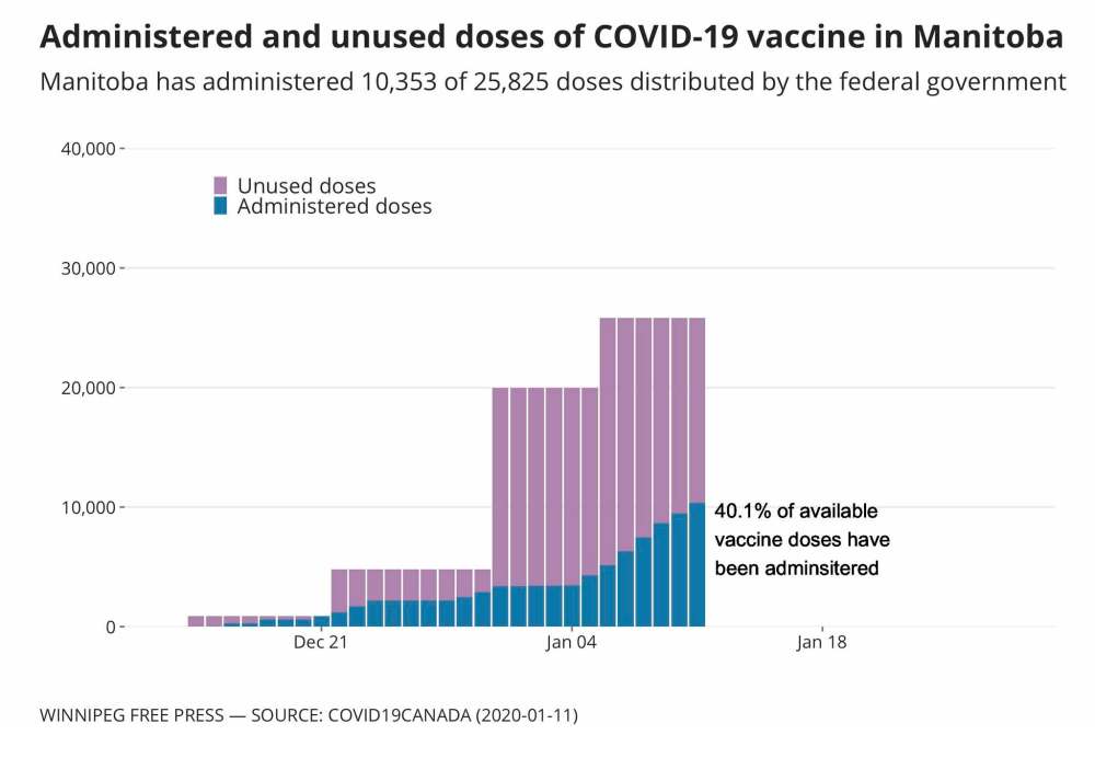 As of Monday afternoon, the province reported 10,353 doses had been administered. The balance will be used this week at appointments for first- and second-dose immunizations in Winnipeg.