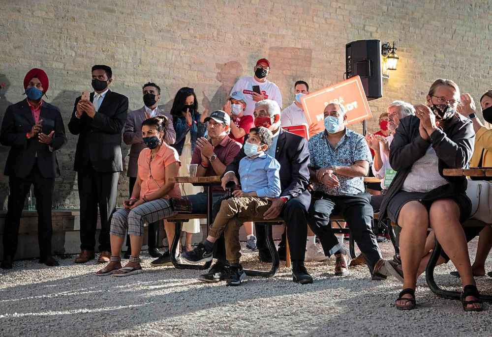 Speaking to a crowd of masked supporters crammed at tables at the open air patio on Main Street, Trudeau recapped his government’s pandemic response and again criticized Conservative Leader Erin O’Toole for not requiring his candidates to be vaccinated against COVID-19.