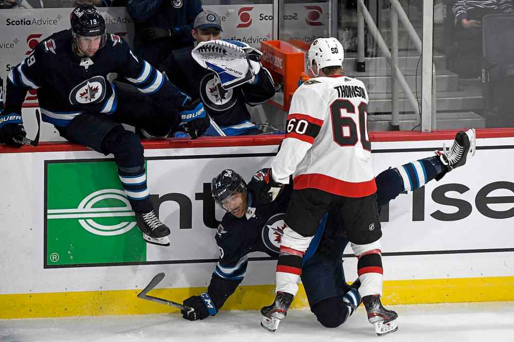 Still, just the fact hockey was back seemed like enough to cheer for, as well as a highlight reel goal by Ottawa that even if you didn’t like as a Jets fan you had to appreciate. Senators forward Ridly Greig opened the scoring 11:30 into the first period, executing a behind-the-back-and-through-the-legs move that fooled Jets defenceman Ville Heinola before sniping a back-handed shot high on Eric Comrie.