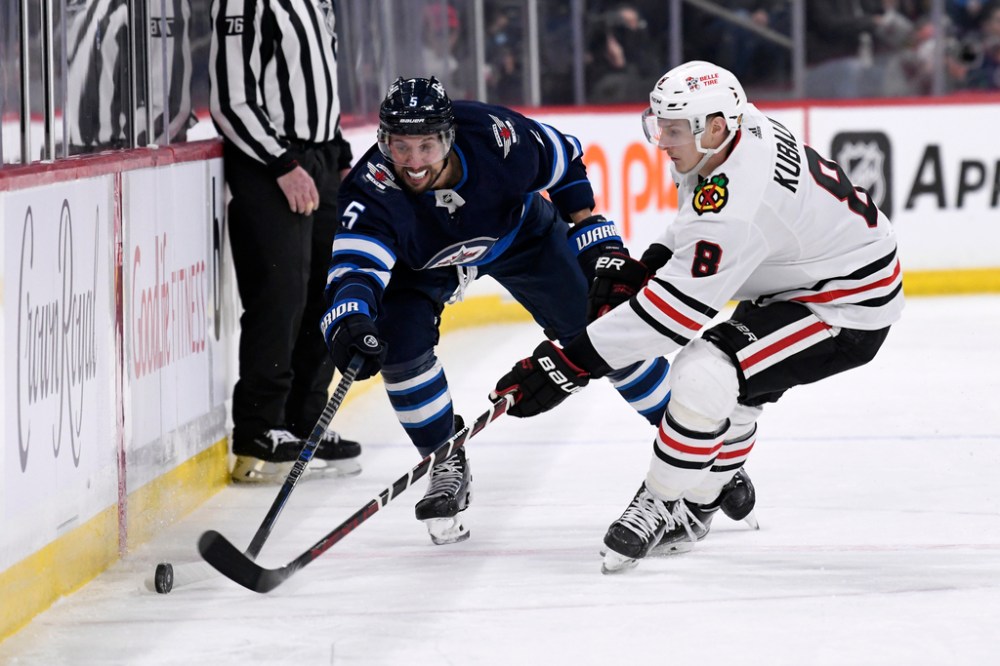 The Jets fall to 20-18-8. The Blackhawks improve to 18-24-7.