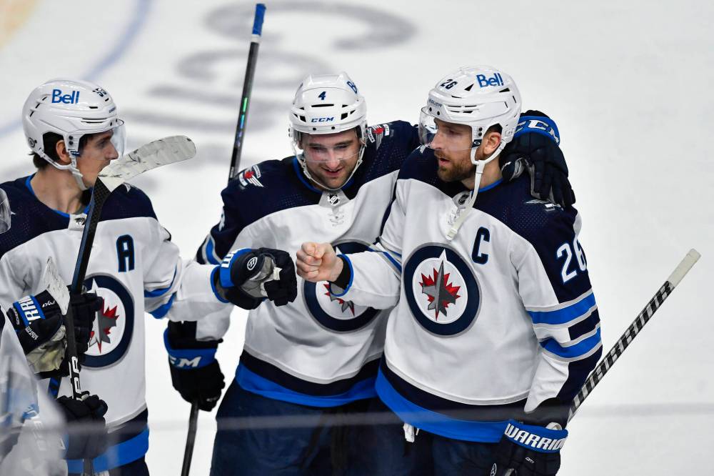 BUFFALO — Blake Wheeler joked that he was channelling his inner Patrick Kane. “Spitting image, right?” he told the Free Press with a smirk. Connor Hellebuyck, on the other hand, was simply being the best version of himself. But there’s no mistaking the fact that clutch contributions from the captain and the keeper played key roles in Winnipeg’s 3-2 shootout victory over Buffalo on Wednesday night.
