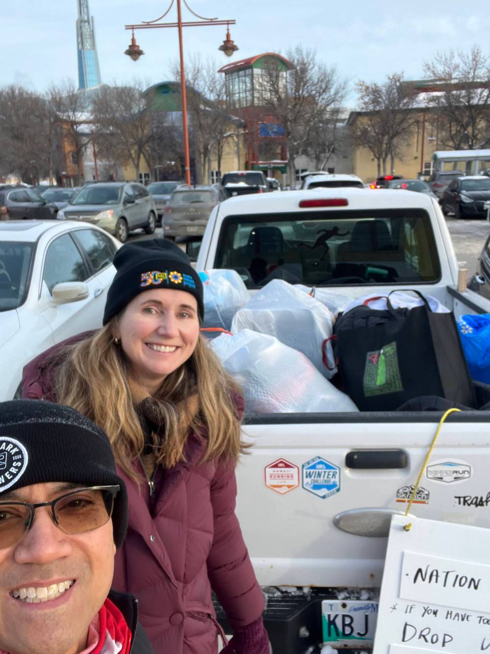 Junel Malapad and fellow members of the Winnipeg Run Club fundraised $300 and a truckload of donations in support of Main Street Project. (Supplied)