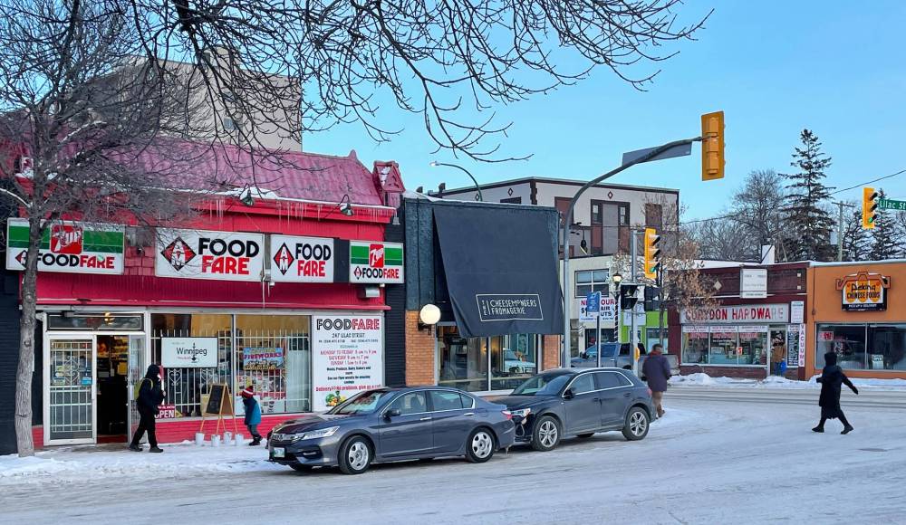 Brent Bellamy photo The intersection of Lilac Street and Corydon Avenue, an example of a traditional ‘15-minute neighbourhood’ in Winnipeg.
