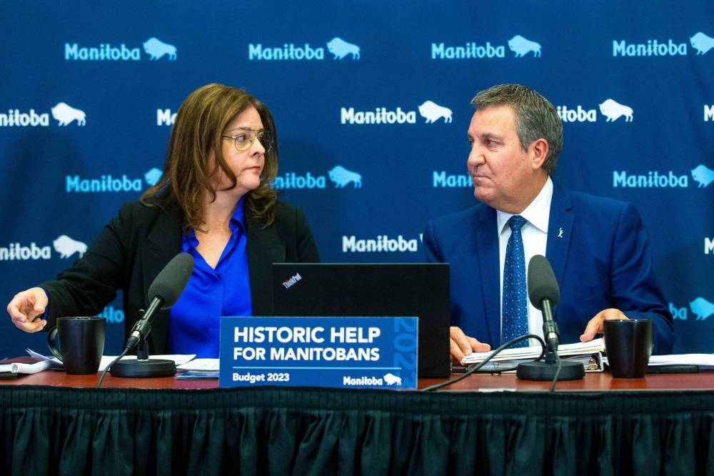 Premier Heather Stefanson and finance minister Cliff Cullen announced the budget at the Manitoba Legislative Building in Winnipeg on Tuesday.