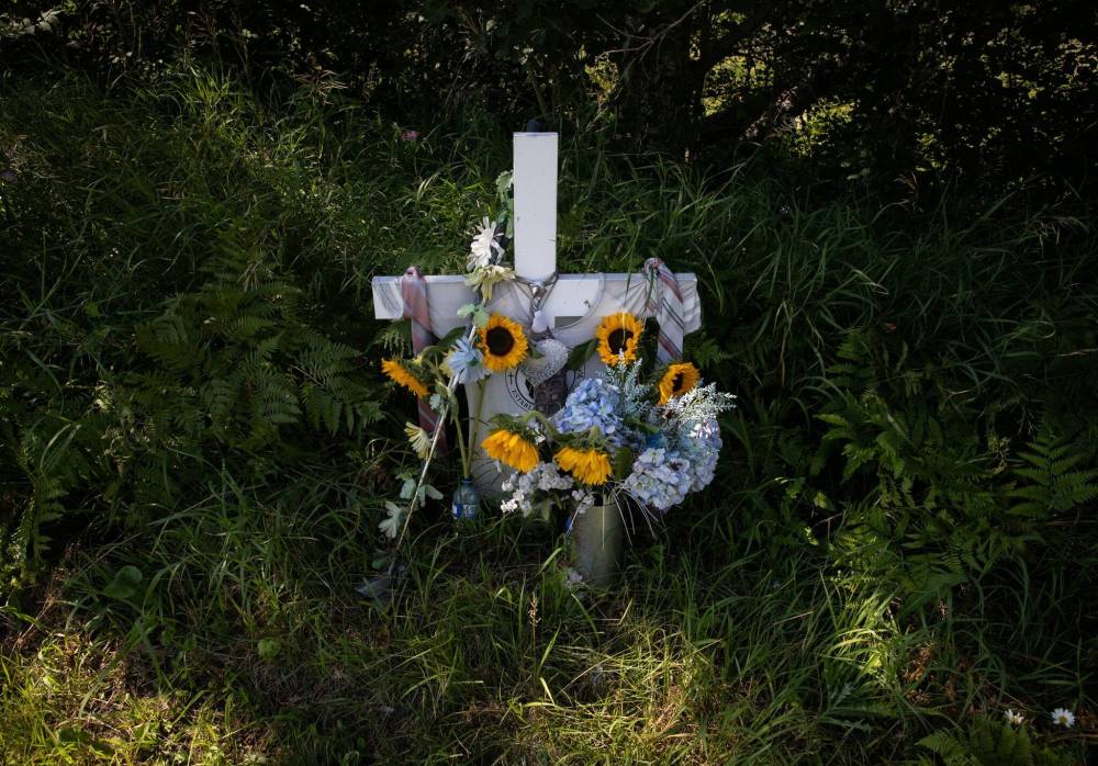 A memorial to Mark and Jacob Lugli at the site they were killed on the Trans-Canada Highway.