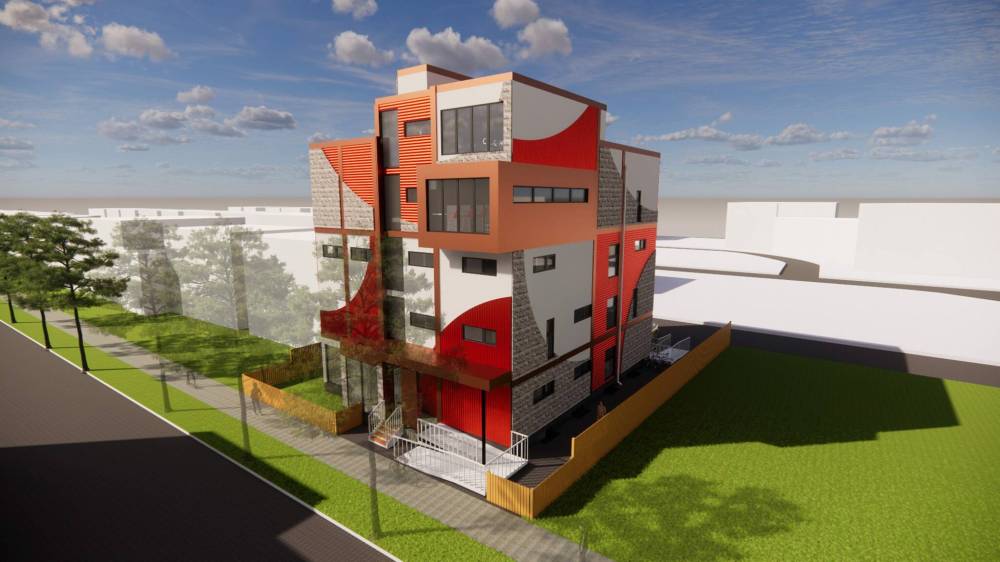 The four-storey building would feature a counselling space, roof deck, indoor secure bicycle parking, and an indoor communal area. Its five parking stalls would include a dedicated space for a car-share vehicle and an electric vehicle stall. The building would be clad with Tyndall stone, stucco, aluminum and corrugated steel.