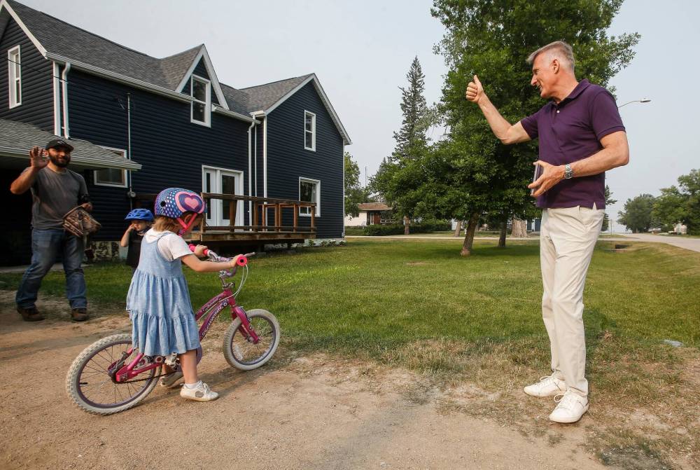 A block away, a couple in a pickup truck pulled over to greet the man they see as the defender of their values, the one they plan to vote for in Monday’s Portage-Lisgar byelection.