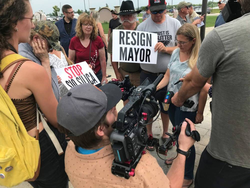 “This Rural Municipality of Springfield draft development agreement has inadequacies that will not protect you or your family for future generations,” Miller said. “I can’t support that,” the councillor told those gathered in front of the building, some holding signs calling for the mayor to resign, and others with signs reading “Stop Sio Silica” and “Save Our Water.”