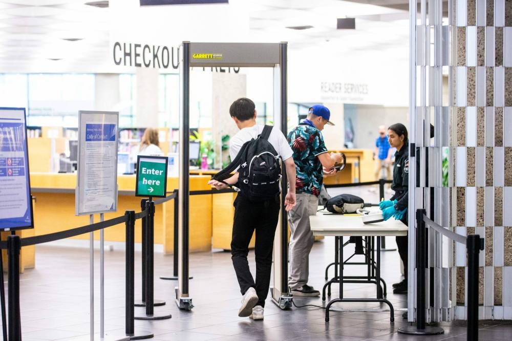 Walk-through metal detectors will remain at the Millennium Library.