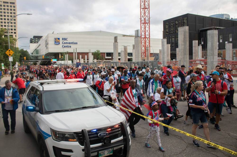 Billed as the largest sporting event to be held in Manitoba, the 2023 World Police and Fire Games appeared to live up to its claim Friday evening, as thousands of firefighters, paramedics and law enforcement officers converged on Winnipeg’s downtown.