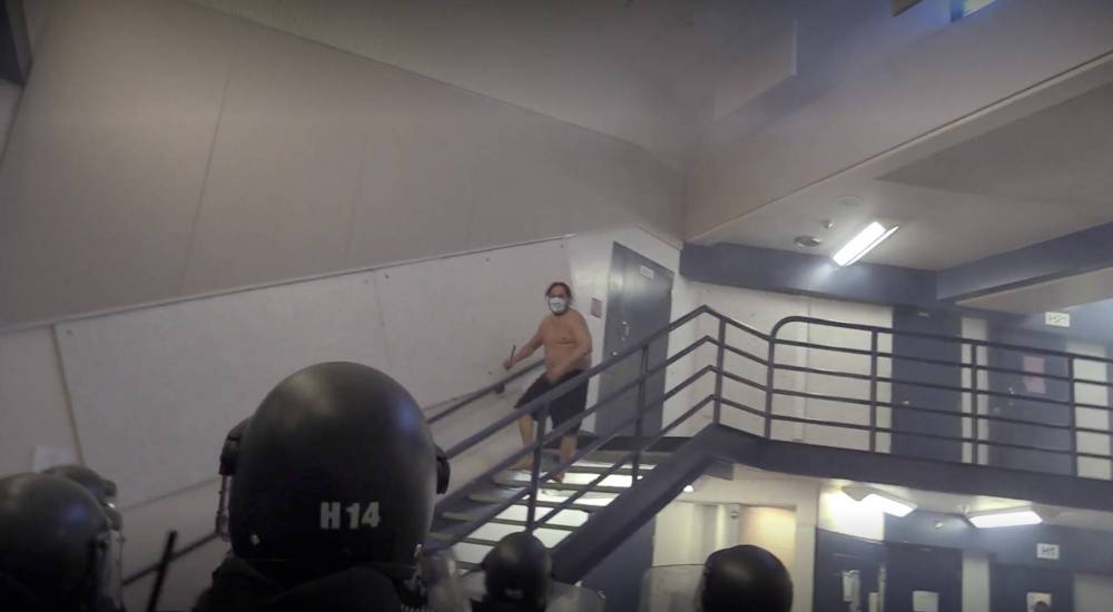 Jail video previously played for court showed Morden and nearly a dozen other response officers storming the common area of Ahmo’s unit and firing several chemical irritant projectiles as the inmate stood on a second-floor walkway.