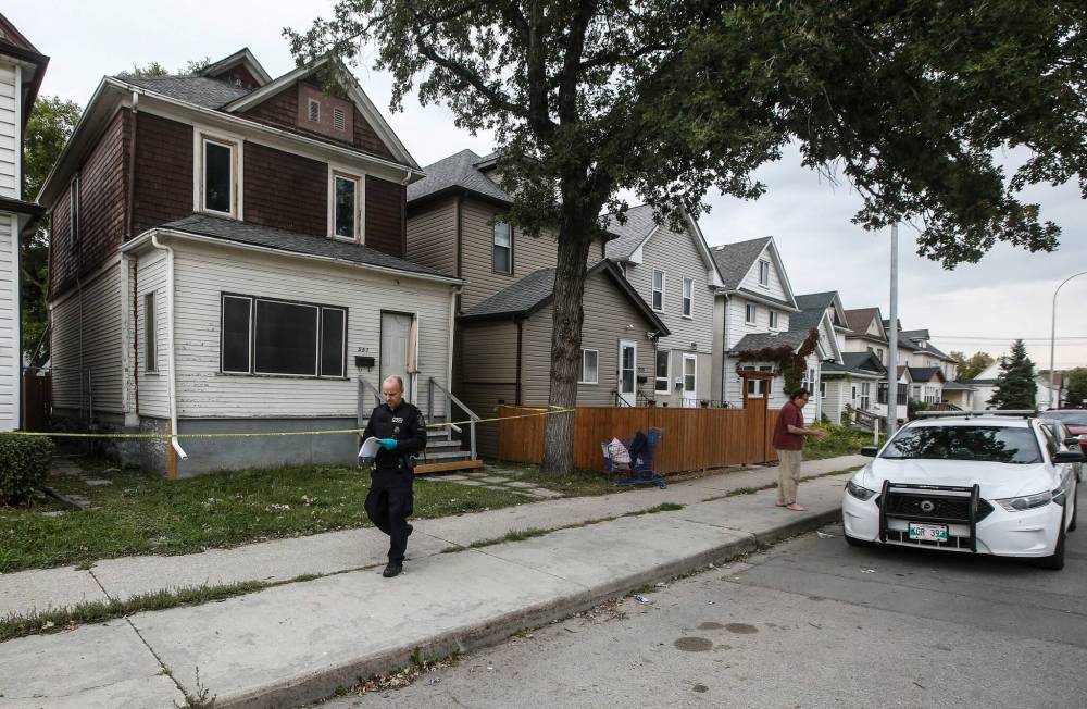 JOHN WOODS / WINNIPEG FREE PRESS FILES Police investigate at 557 Mountain Avenue which was the scene of Winnipeg’s latest homicide earlier this month.