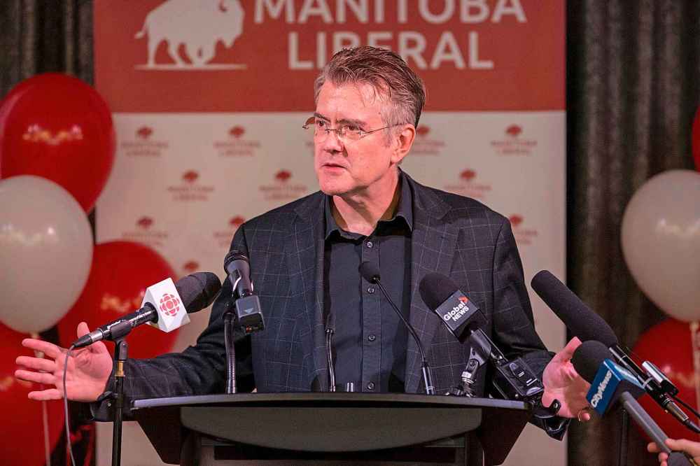 Manitoba Liberal Party leader and candidate for St. Boniface Dougald Lamont during his concession speech, where announced he is stepping down as party leader.