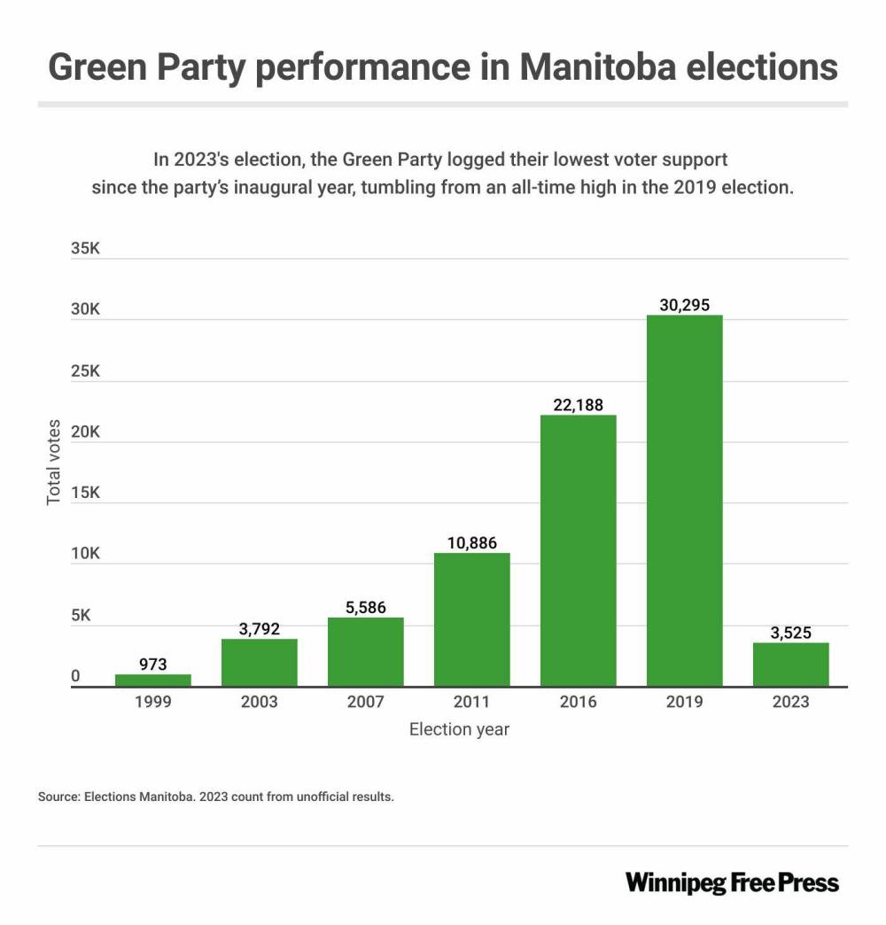 Tuesday’s provincial election marked a shuffling of political fortunes — and perhaps none suffered more than the Green Party of Manitoba.