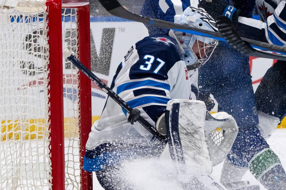 The Canucks played a smothering game on the defensive side of the puck and peppered Jets goalie Connor Hellebuyck with 37 shots on goal and 61 shot attempts.