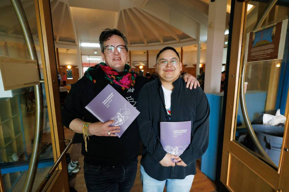 “None of those deaths took place at the Mobile Overdose Prevention Site. And that’s the point — to keep people alive,” Aasland said to applause and cheers from the crowd of about 100 people gathered at Circle of Life Thunderbird House.