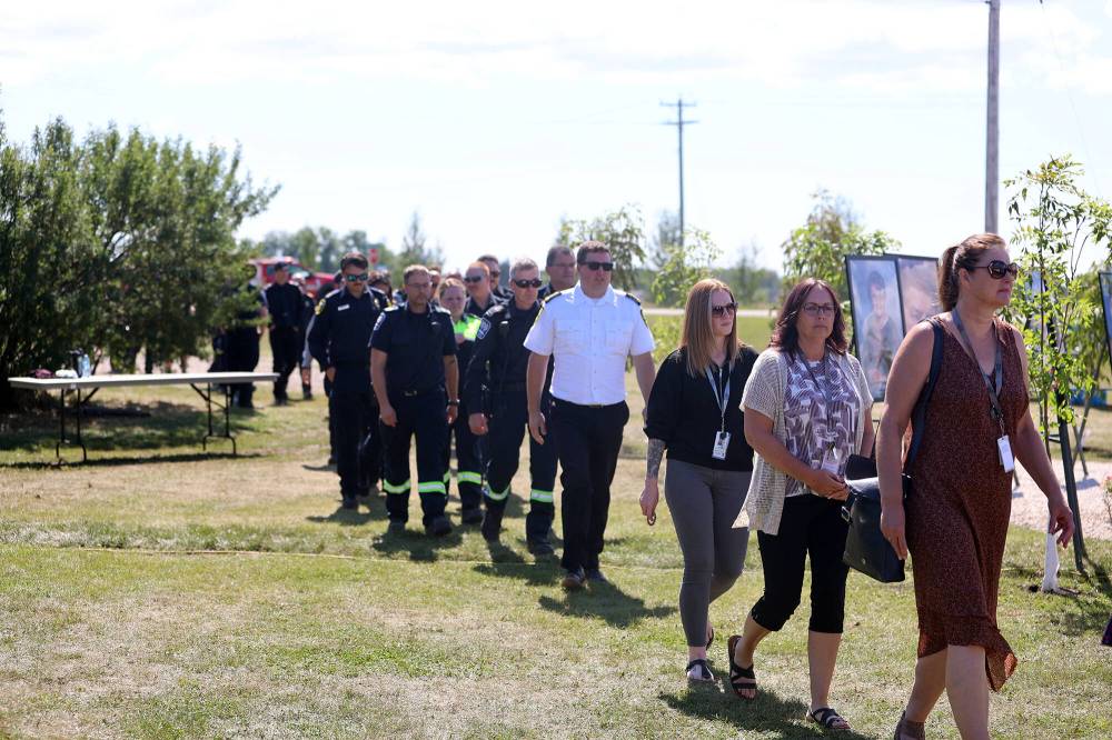 CARBERRY — Premier Wab Kinew described the first responders who acted heroically during Manitoba’s deadliest bus crash on June 15, 2023, as “the best of us” during a memorial ceremony held Sunday in Carberry’s Day Lily Park.