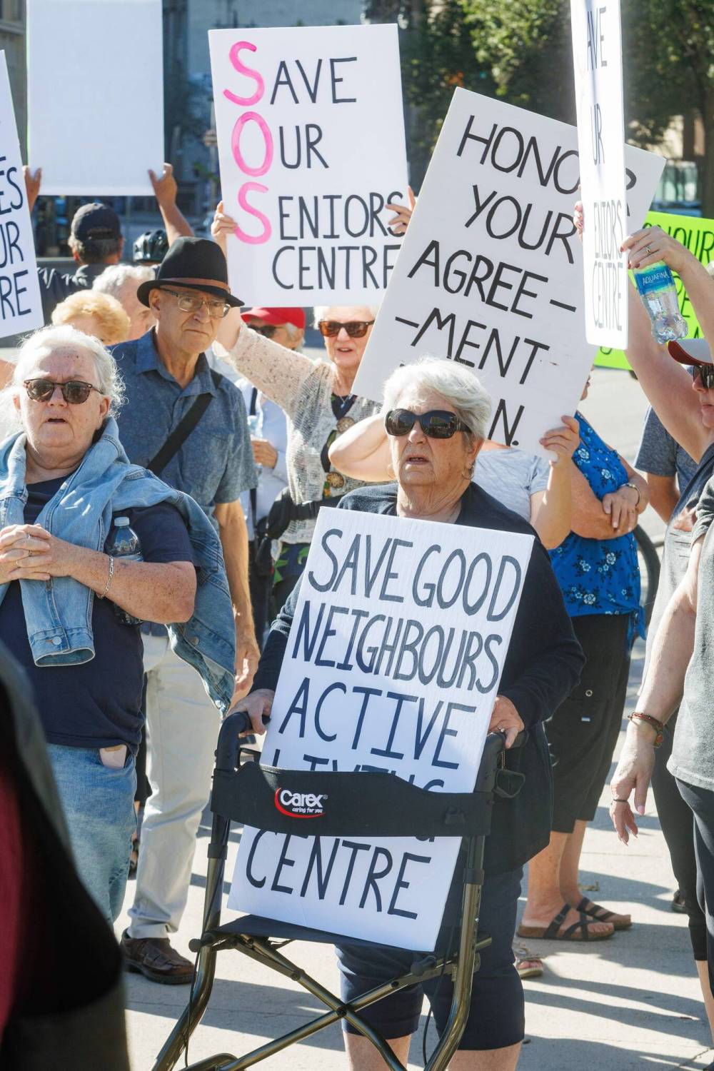 A group that represents the Good Neighbours Active Living Centre picketed outside city hall Thursday — some of them holding signs that said “save our seniors centres” and “partners, not tenants” — to denounce the fee hikes.