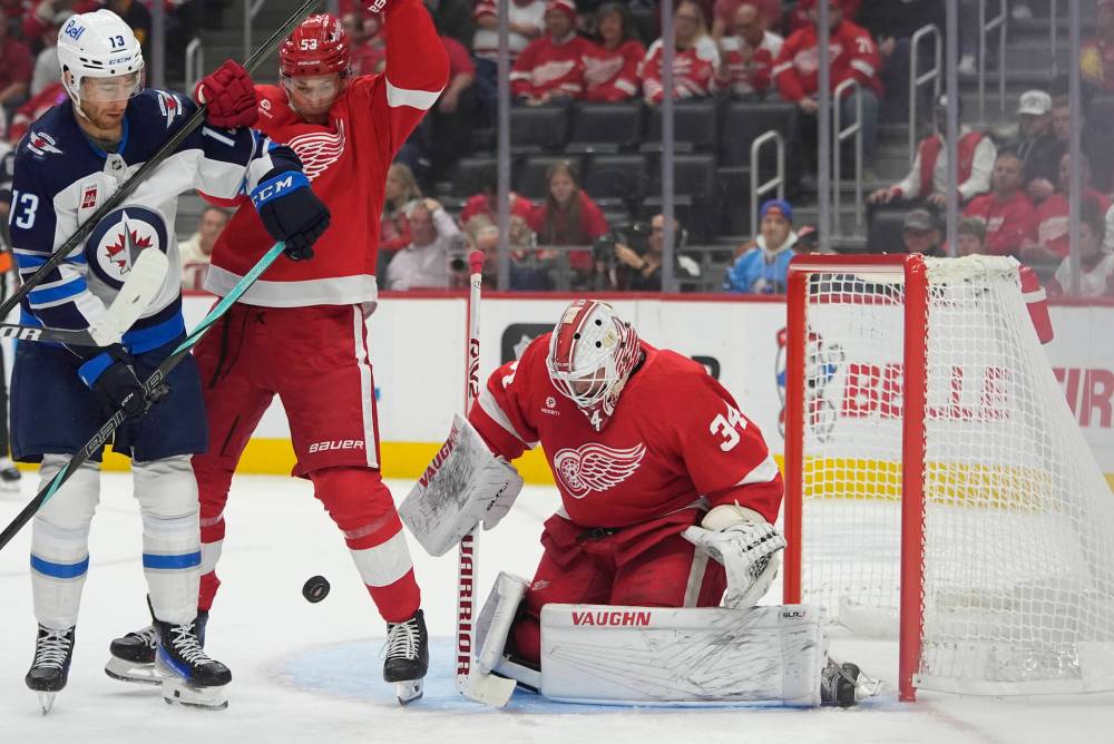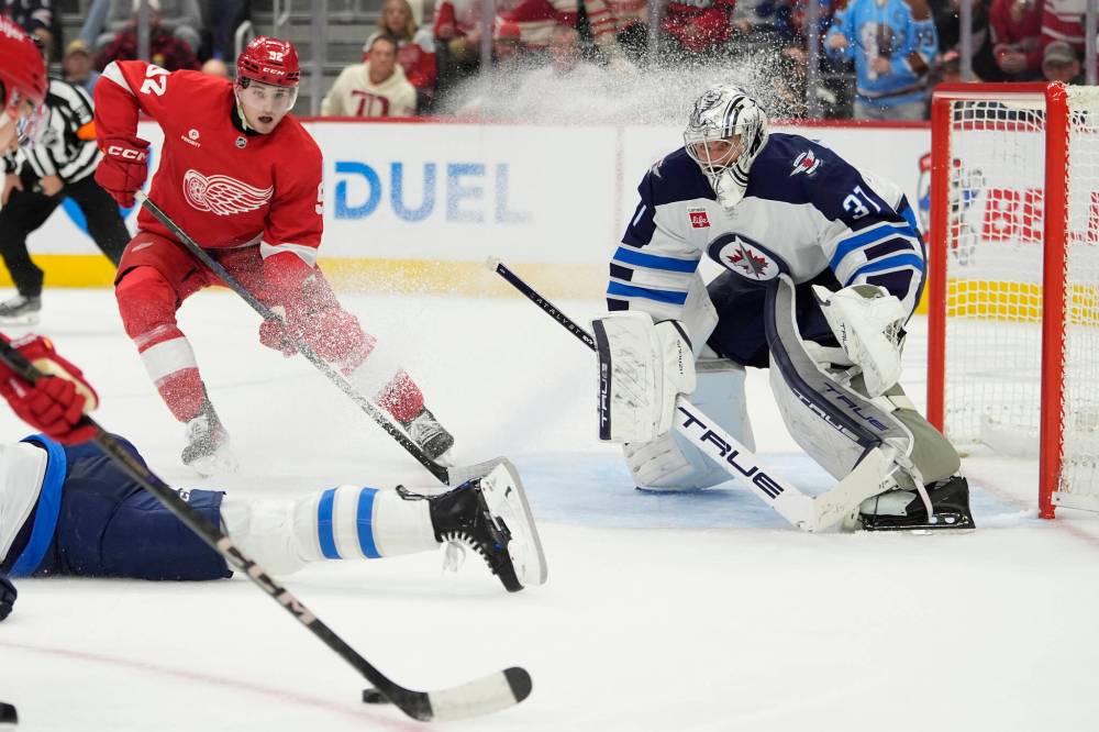 Winnipeg took three consecutive minor penalties — two of them were what you might dub “game management” type calls given the lopsided score through 20 minutes — and Detroit converted on two of them with deflections by Dylan Larkin and Alex DeBrincat that eluded Connor Hellebuyck.
