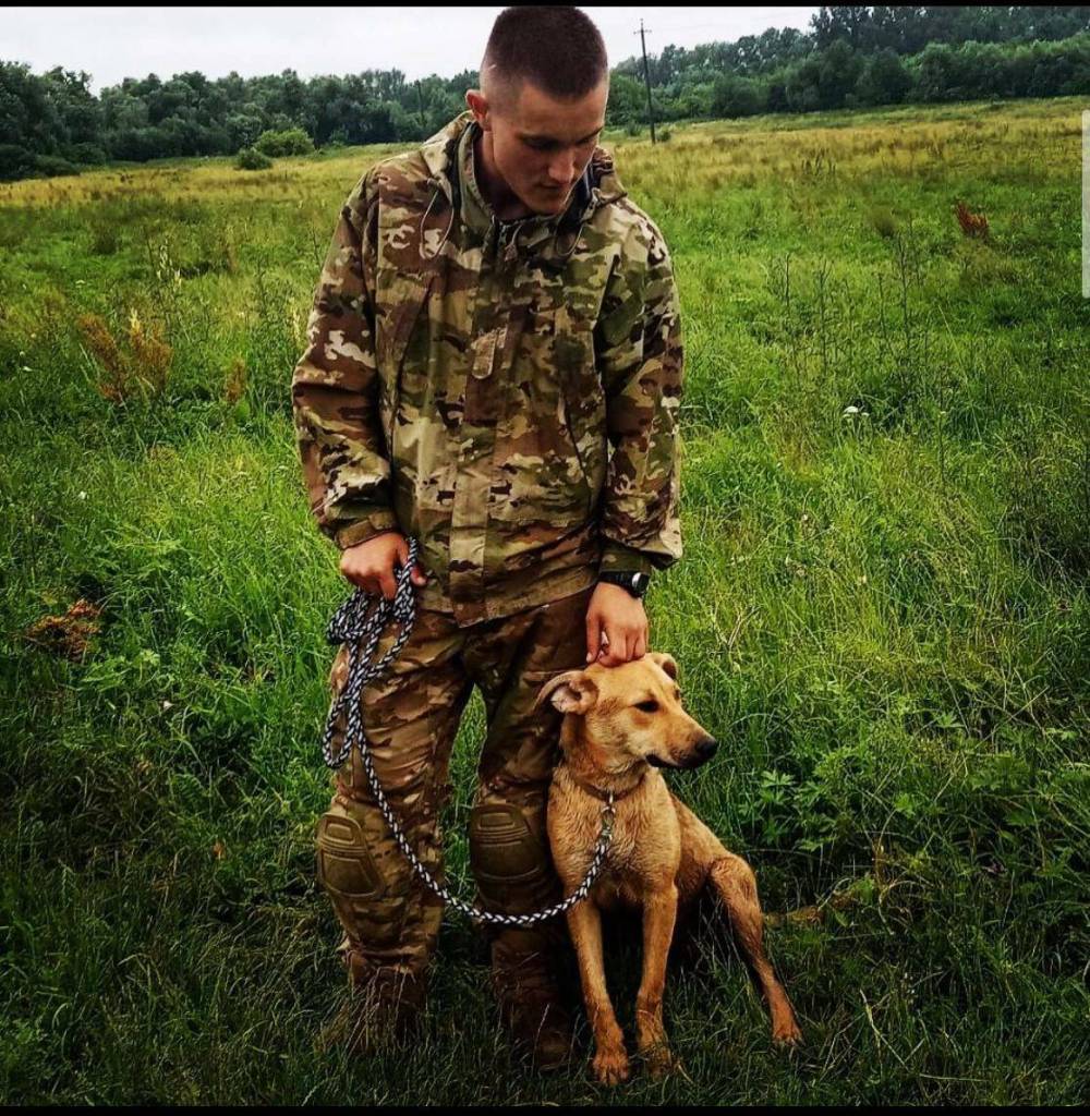 SUPPLIED While Dmytro Vasyuta was serving in southern and eastern Ukraine, he rescued a dog, Ryzyk. After Dmytro was killed in February 2022, Ryzyk came to live with his parents in their village of Cherneve.