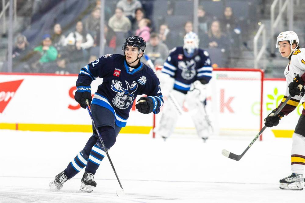 MIKAELA MACKENZIE / FREE PRESS Heinola skates with the Moose in a school-day game on Thursday.